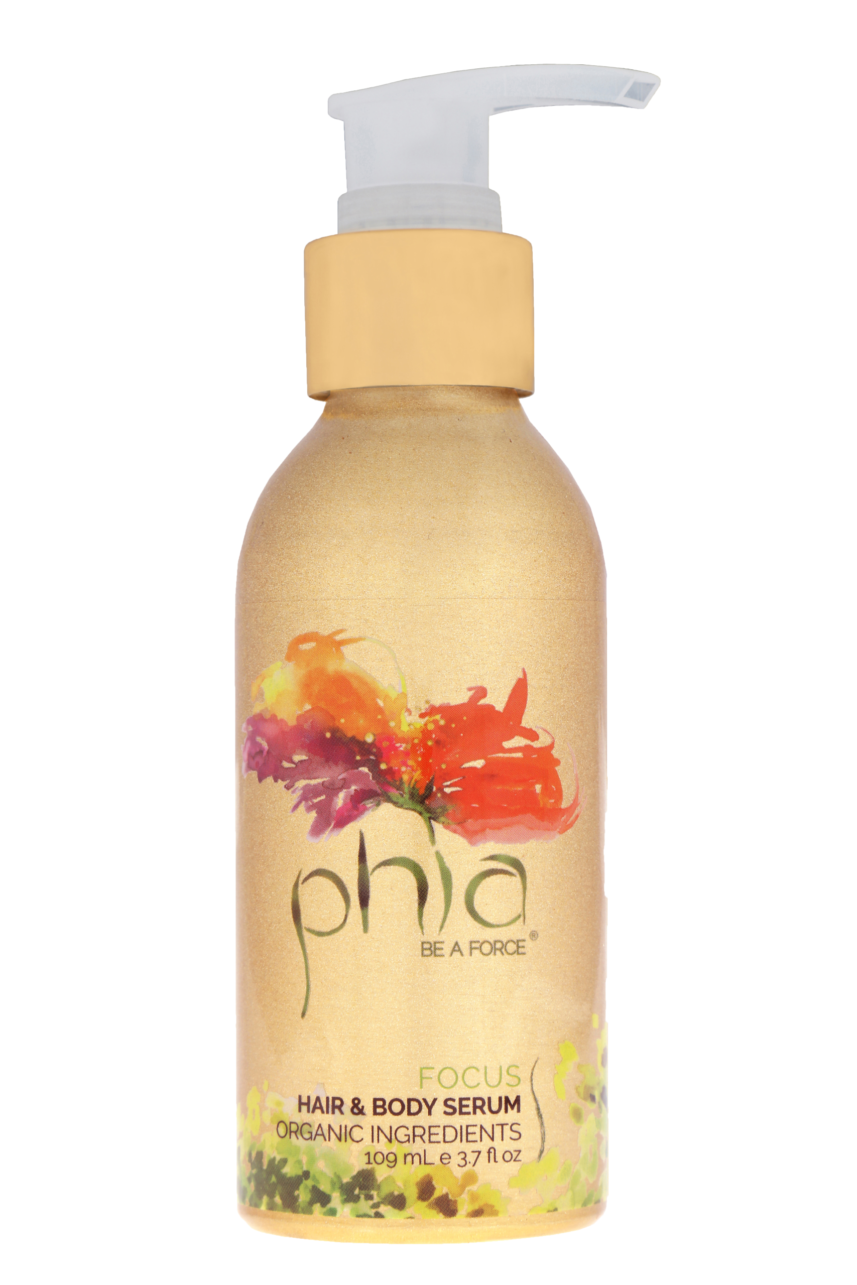 Illuminating Serum (3.7 fl oz / 109 ml) — Protects your hair from the damaging effects of UV and heat, makes your hair smooth and adds incredible SHINE. By using real rare ingredients to replenish valuable nutrients and provide moisture your hair will look and feel like silk! A must have for all hair types. The Phia Serum is also great on the skin as a makeup primer, cuticle oil or all over moisturizer.