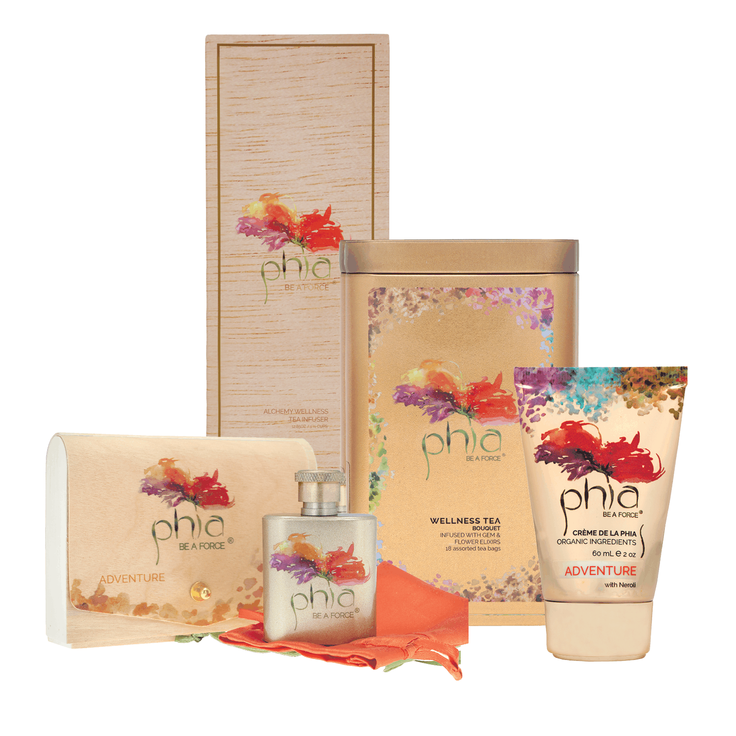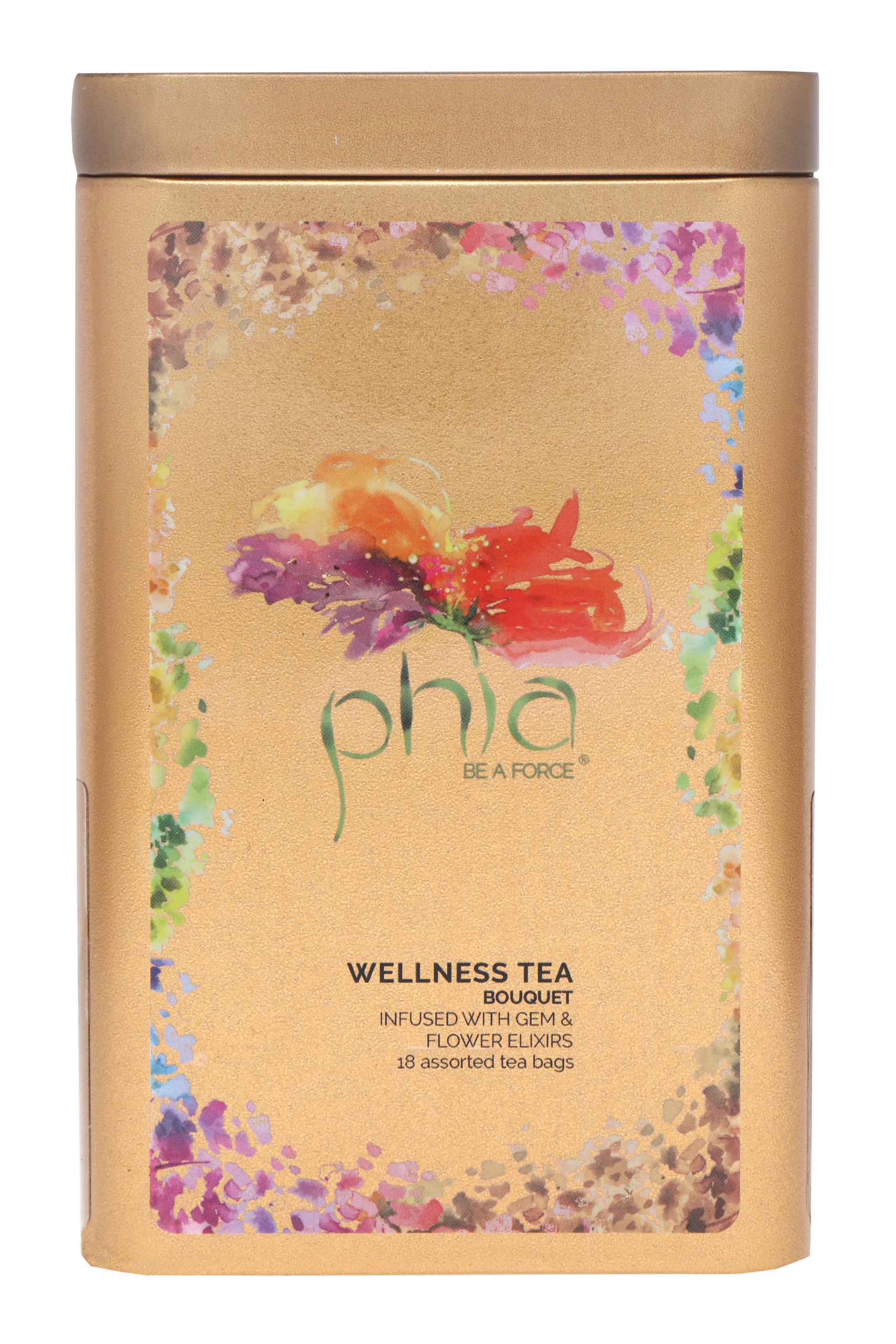 Organic Loose Leaf Tea (5 oz) — Created to complement our energy products, Phia Wellness Teas extend the energizing experience of Phia throughout the day. The Tea selection consists of six Bouquets that align with the Phia Energy Spectrum. Teas are made from the finest organic ingredients and are infused with gem and flower elixirs.